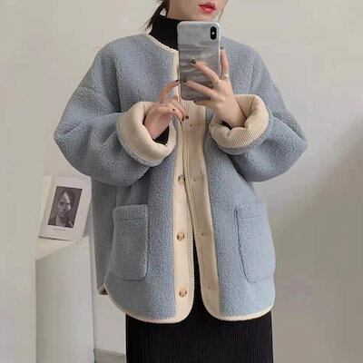 レディース カーディガン ジャケット 中綿コート レトロ ショートコート 高級感 百掛け フェイクラムズフリース 冬アウター 日韓国ファッション 着痩せ ファーコート