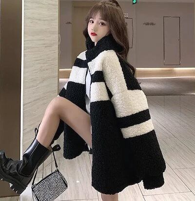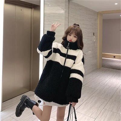 スウェット 秋冬 学生 フェイクラムズフリース 裹起毛 ジャケット 冬 コート 厚手 怠惰な風 韓国ファッション 中綿コートゆったり 暖かい 冬アウター レディース 大きいサイズ 百掛け