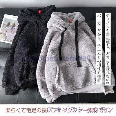 秋冬服 ボアパーカー トレーナー レディース プルパーカー ボアフリース もこもこ おしゃれ 無地 スウェット アウトドア ゆったり 防寒 フード付き