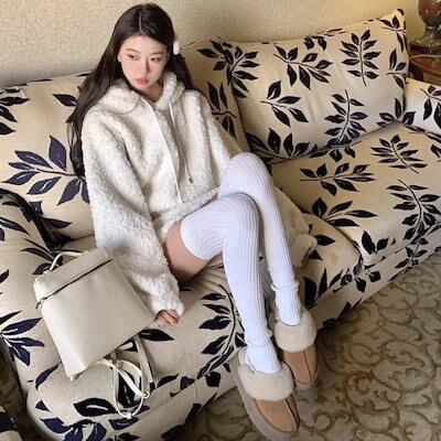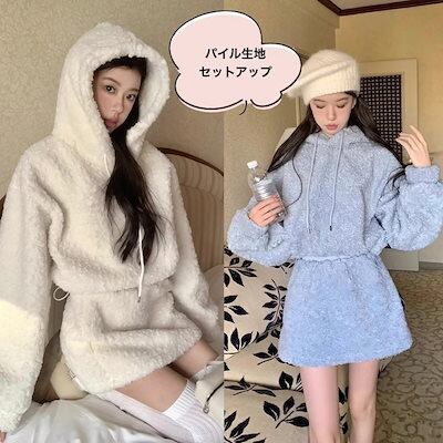 パイル地 セットアップ レディース 韓国 ファッション パーカー ミニスカート パイル フリース 上下セット