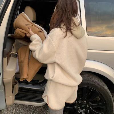 ボア フリース セットアップ レディース 韓国 ファッション ハーフボタン ボアトレーナー ショートパンツ 上下セット