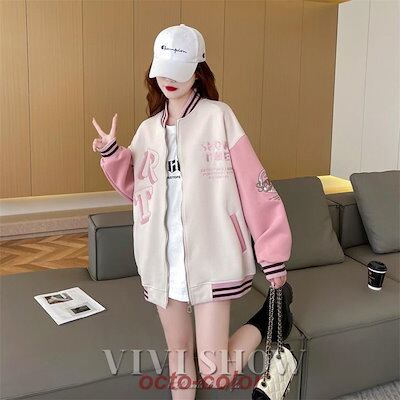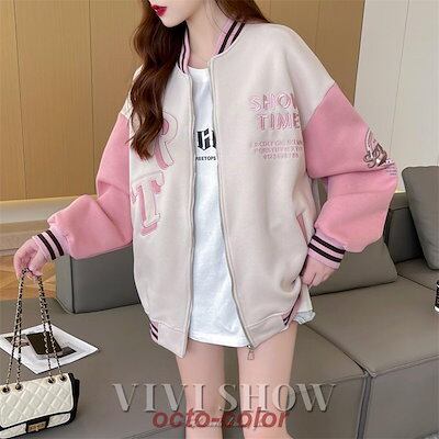 スタジャン レディース スウェット カジュアル オーバーサイズ ビッグシルエット ジャンパー ブルゾン スタジアムジャンパー 切り替え