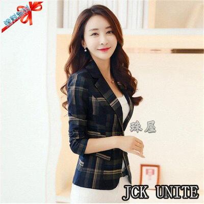 テーラードジャケット レディース アウター ジャケット 長袖 春ジャケット 羽織り テーラード チェック柄 上着 春 秋 通勤