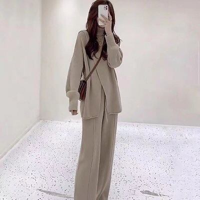 2024秋冬 新作 おしゃれ 気質 レディースセットアップ ニット アウター 二点セット 上下セット セーター ワイドパンツ セットアップ