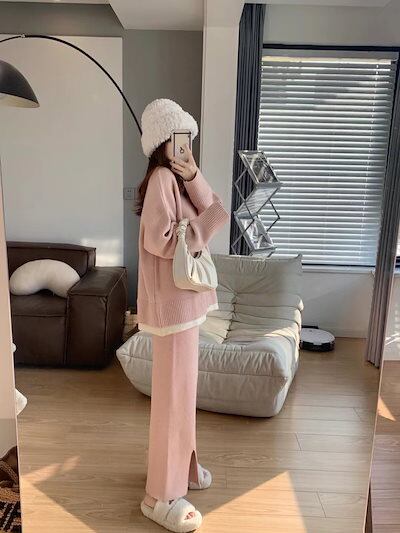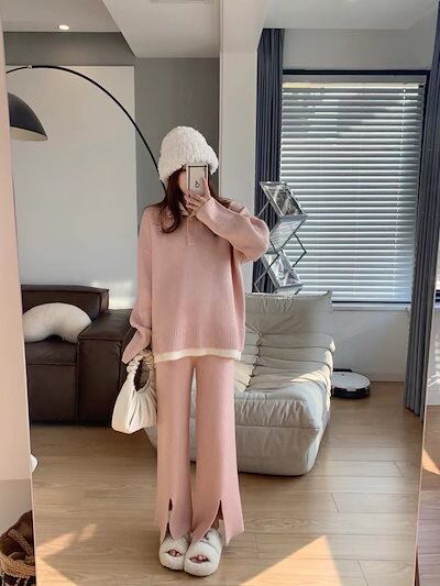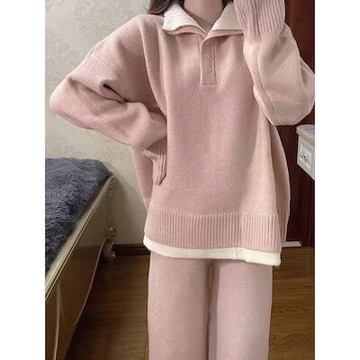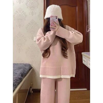 ベーシックニット 秋冬 新作 おしゃれ 気質 上下レディースセットアップ ニット アウター 二点セット セーター ワイドパンツ セットアップ 通勤 長袖セーター 福袋