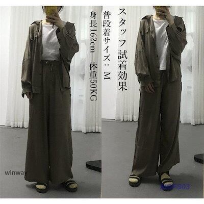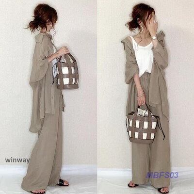 期間限定 セットアップ パンツスーツ レディース 2点セット ブラウス シャツ ドルマンスリーブ 夏 ワイドパンツ 長袖 春 秋 通勤 カジュアル 着痩せ