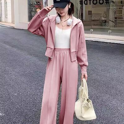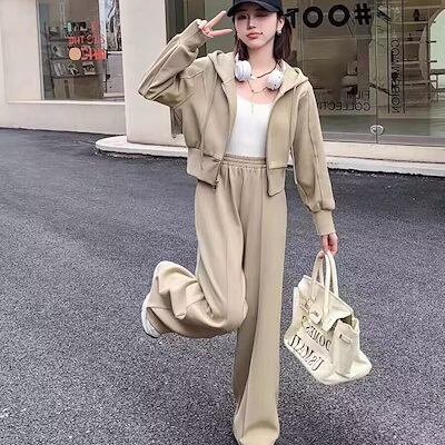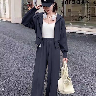 【送 料 無 料】初秋 新作 レディース パーカー セット 通勤 二点セット フォーマル シンプル 長袖スウェット フード付き ワイドパンツ 百掛け 快適 セットアップ 韓国ファッション 体型カバー