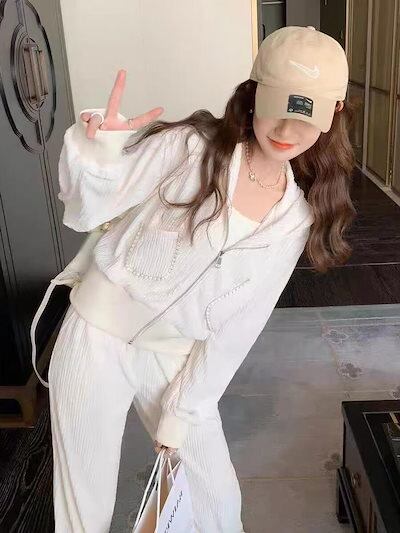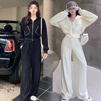 秋 パーカー セットアップ レディース 高?感 カジュアル 韓国ファッション 運動 2点上下セット パーカー /ワイドパンツ 流行り 着痩せ 二点セットトレーナー