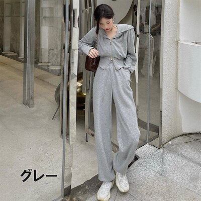 レディースファッション 3色 セットアップ スウェット パンツ ジャージ 上下セット セットアップ セットアップ スウェット長袖 秋 トレーナー ワイド ドローストリング 2WAY グレー ブラック