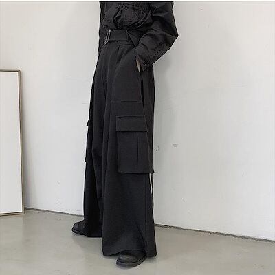 目玉商品超 パンツ メンズ レディース 春 秋 ゆったり B系 ワイドパンツ レイヤード スカートパンツ レディース ボトムス ガウチョパンツ 無地 薄手 黒 変形 v系 モード