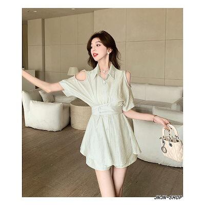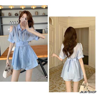 季節限定 2024新作 セットアップ レディース 夏 肩出し ショートパンツ 2点セット おしゃれ ウェストゴム ワイドパンツ オフィス 通勤 OL 20代30代