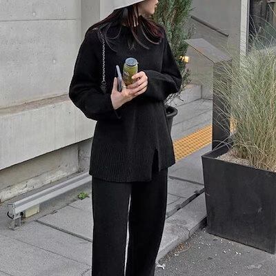 秋冬 新作 ニット 二点セット おしゃれ 気質 アウター レディースセットアップ 上下セット セーター ワイドパンツ セットアップ 通勤 シンプル 福袋