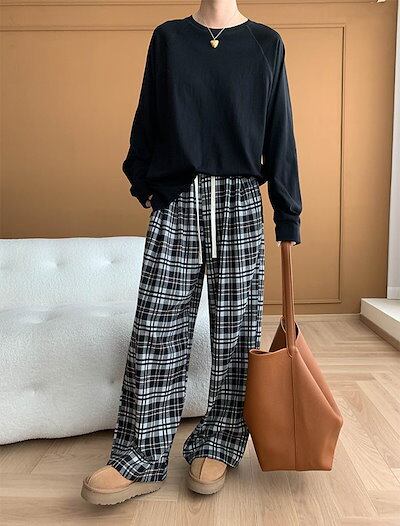 ワイドパンツ レディース チェック柄 ガウチョパンツ イージーパンツ ロング丈 パンツ ズボン ボトムス リラックスパンツ チェックパンツ 大きいサイズ ウエストゴム ゆったり 大きめ リラックス ス