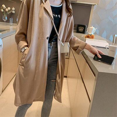 トレンチコート レディース ライトコート 春 秋冬 コート スプリングコート 長袖ジャケット ロング シンプル 無地 おしゃれ 羽織り 通勤