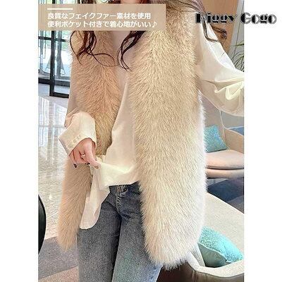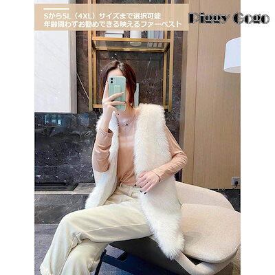 ファーコート フェイクファー ファーベスト レディース 春 秋 冬 防寒 コート アウター もこもこ 暖かい ベスト ふわふわ 無地 ポケット付き 大きいサイズ 4L 5L