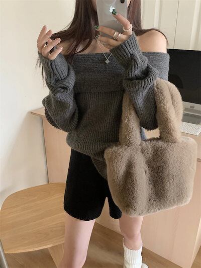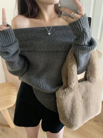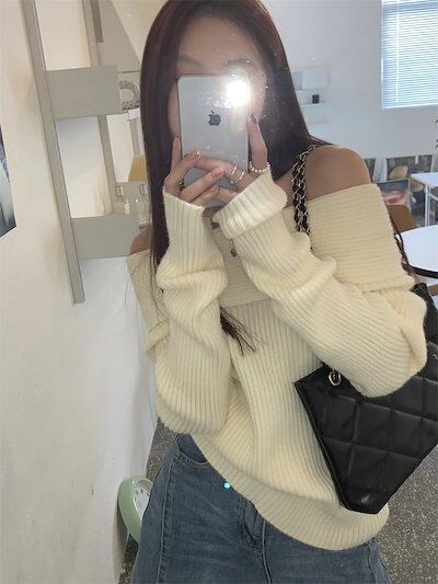 2024秋冬トップス 長袖 ニット レディースショートおしゃれ カラバリ肌見せカラーシンプルスタイルアッププル色っぽ 女っぽ カジュアル きれいめ 大人ネックファッション加工フェミニン秋冬春系