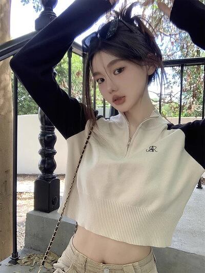 期?限定 トップス 長袖 ニット セーター レディース ショート おしゃれ カラバリハーフカラースタイルアップ 色っぽ 女っぽ カジュアル きれいめ 大人 ネック ファッション フェミニン 秋 冬 春