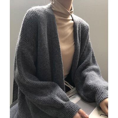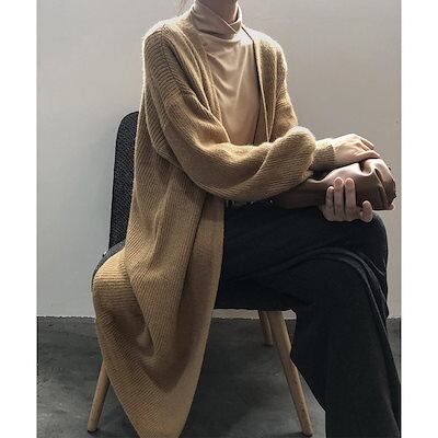 リブニット ロングカーディガン 韓国風 ニットカーディガン レディース アウター 秋冬 新作 ミディアム丈 羽織り ゆったり
