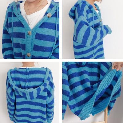 ボーダー柄ニットカーディガン 韓国羽織り ニットカーディガン レディース アウター 秋冬 新作 ミディアム丈 羽織り ゆったり