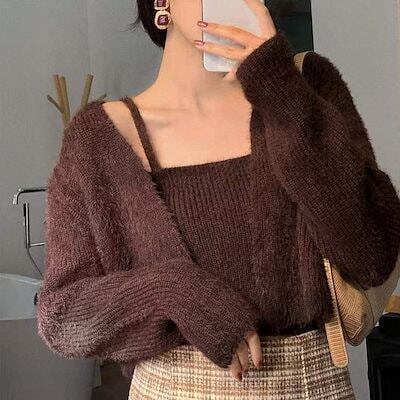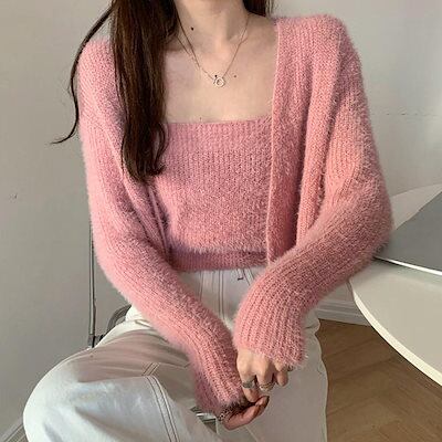 ニットカーディガン キャミ セット 5色 ニットカーディガン レディース アウター 秋冬 新作 ミディアム丈 羽織り ゆったり