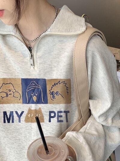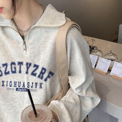 2024 秋冬 2TYPE 裹起毛トップス長袖 かわいいK-POPTロングレディース韓国風ロゴ衣装カラールーズゆったりカジュアルハーフおしゃれサイズスリーブシルエットファッション系サイドシャツフット