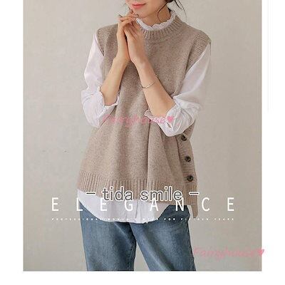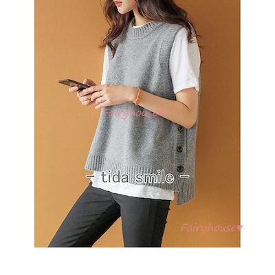 ニットベスト レディース 40代 春春冬 ベストセーター ノースリープ 無地 ニットベスト スリット カジュアル韓国風 ゆったり 通勤 着痩せ 体型カバー 春服