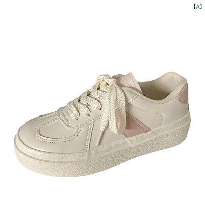 スニーカー レディース フラット ローカット レザー プレーン トゥ 厚底 スニーカー 女性 レトロ 武術 トレーニング シューズ 入生 白靴