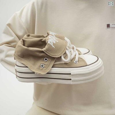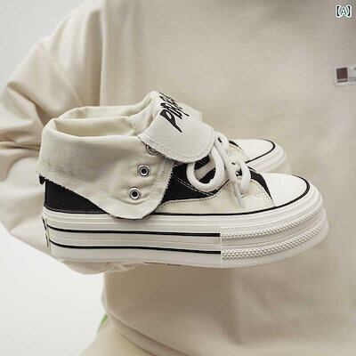 スニーカー レディース キャンバス シューズ 秋 レトロ メイラード プラット フォーム ソール カフ 式 カジュアル ハイ カット 女性用
