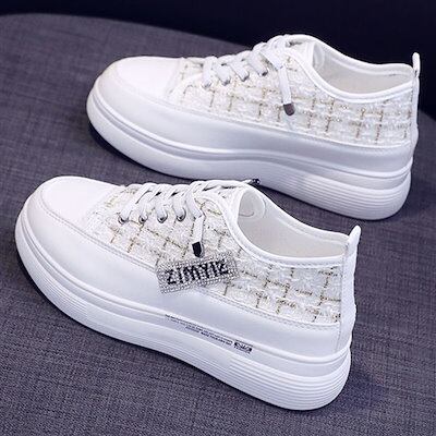2024 秋冬 可愛い ゆったり ボリュームソール スニーカー 足首ほっそり シューズ 脚長効果 美脚見え 学生 通学 シンプル カジュアル 涼しげ スタイルアップ kawaii 靴 白