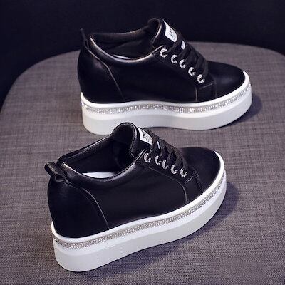 人気SALEインナーアップスロープヒール美脚防水プラットフォームロートップカジュアルローファーレースアップレースアップスポーツレディースシューズシングルシューズ
