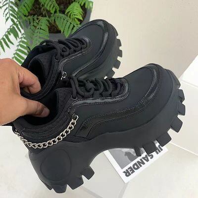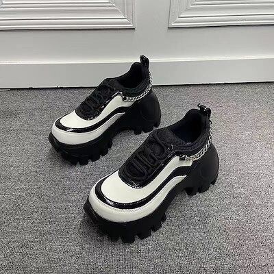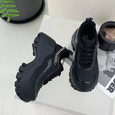 パンク風ハイヒール新型厚底チェーンカジュアルスニーカー痩せ見えシングルシューズ女性