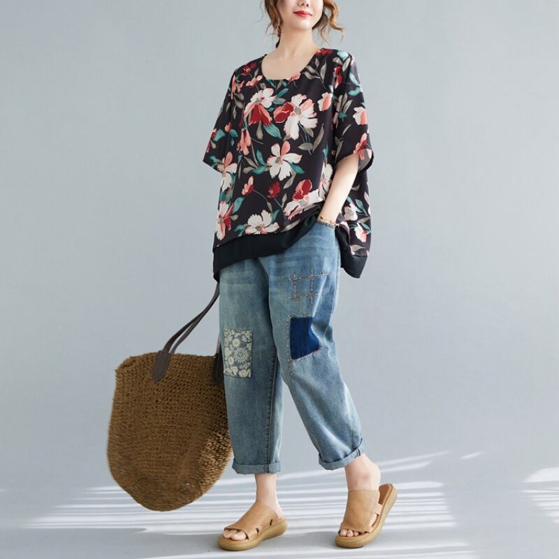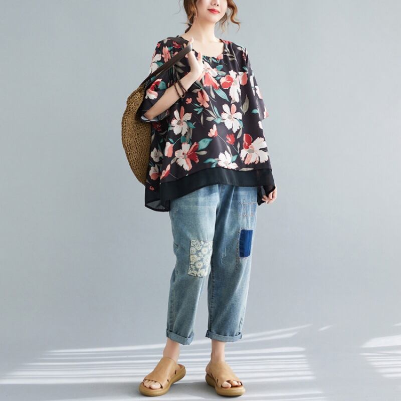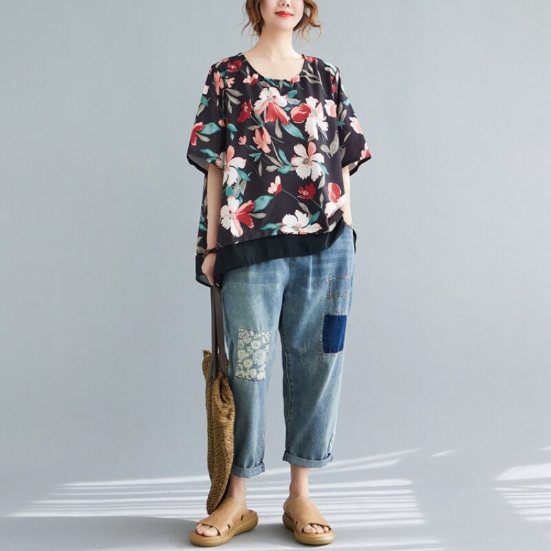 【2022新作】春夏花柄トップス半袖Tシャツ