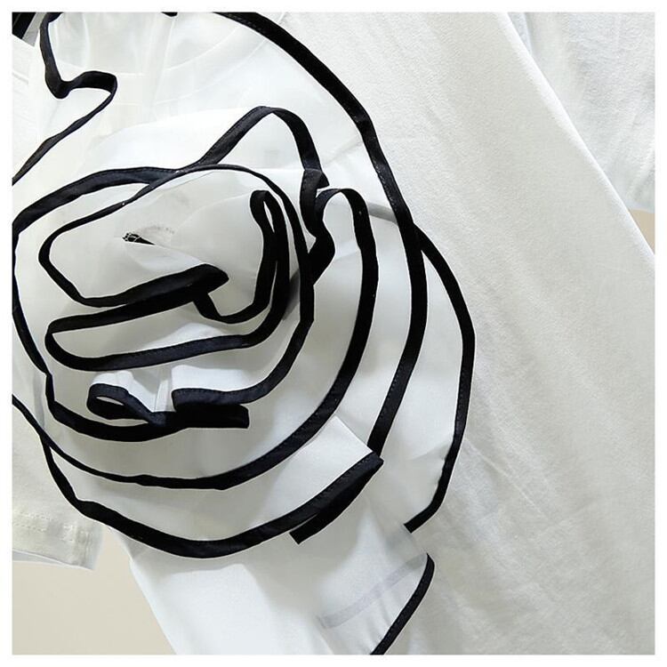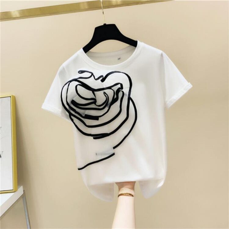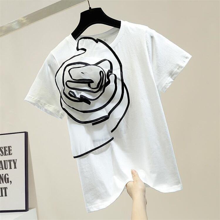 新品 シンプル ビッグフラワー 装飾 半袖 Tシャツ レディース ファッション トップス 2022年夏