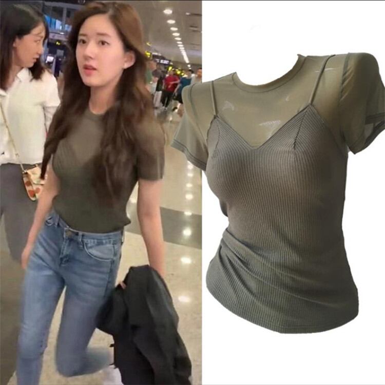 激安セール 夏 スリム 半袖 セクシー トップス メッシュ マイクロトランスペアレント Tシャツ