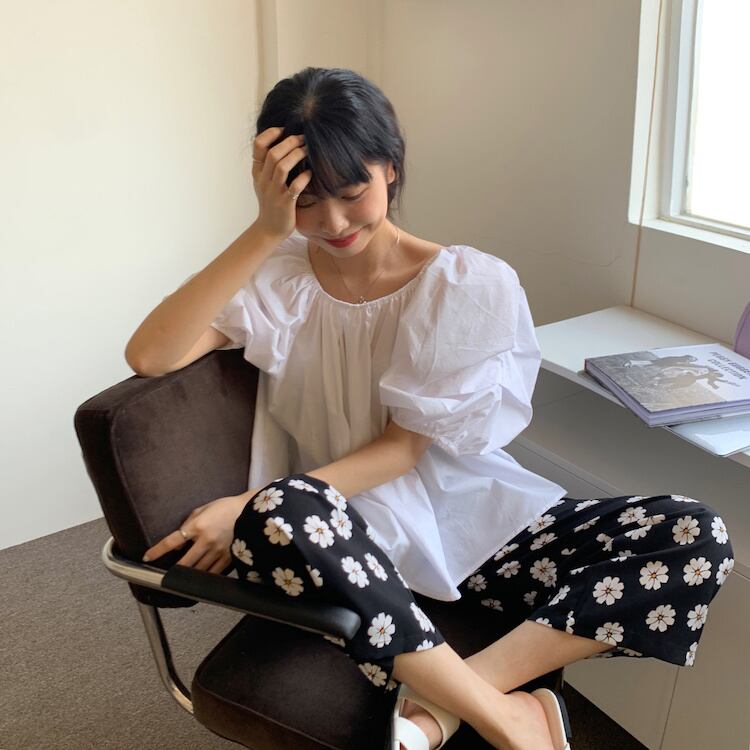 コーデに輝きを添える 綿 sweet系 スリム トップス パフスリーブ レース 半袖 シャツ 気質