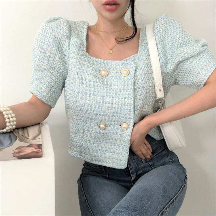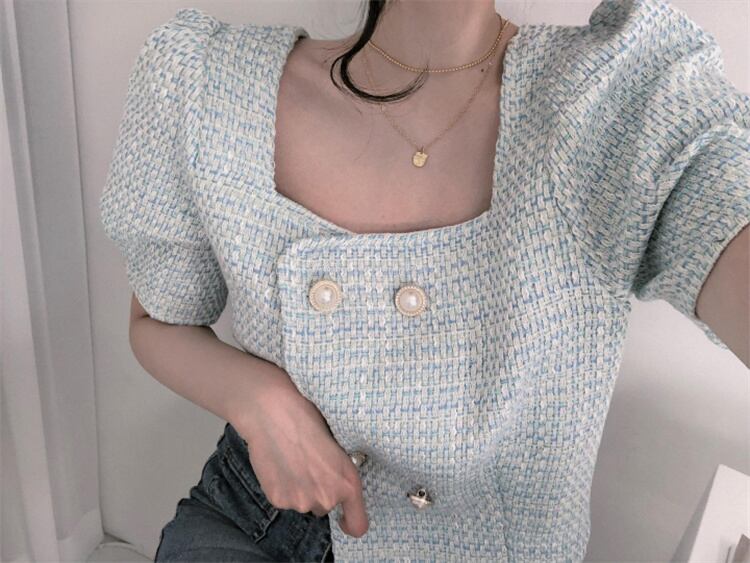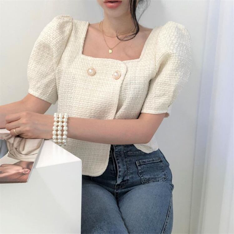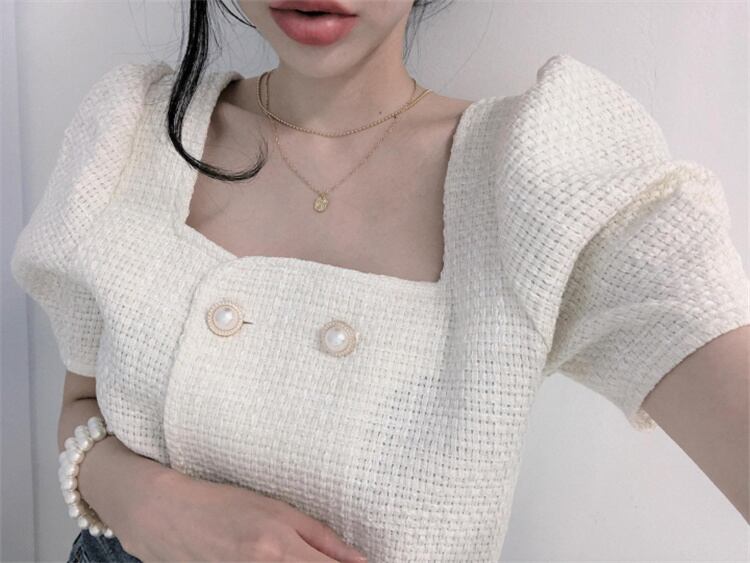 告白を受けます パフスリーブ シャツ スクエアネック 半袖 トップス コート