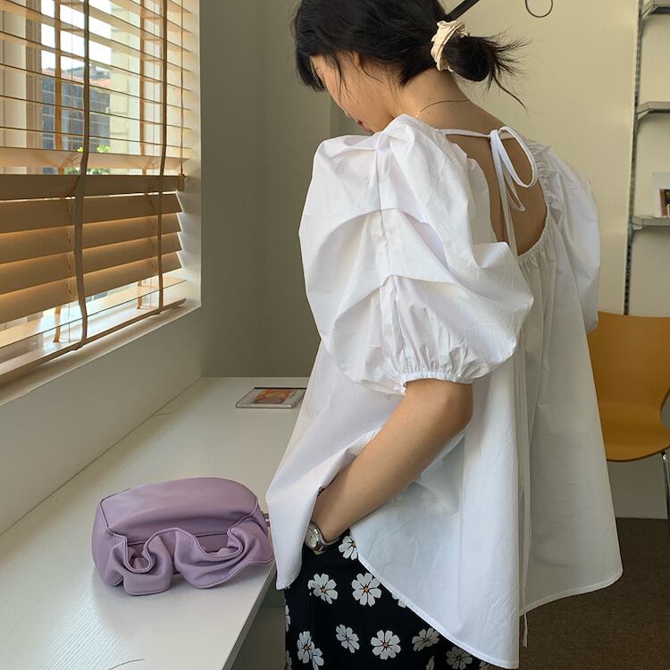 コーデに輝きを添える 早い者勝ち 綿 sweet系 スリム トップス パフスリーブ レース 半袖 シャツ 気質