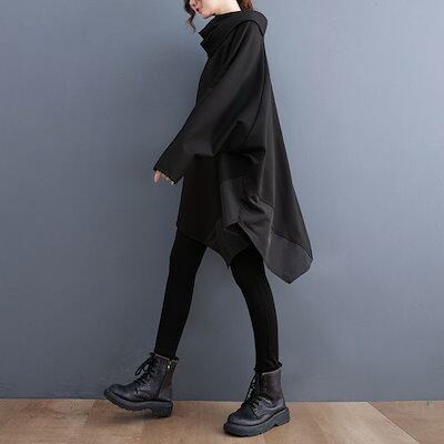 カットソー レディース プルオーバー 長袖 トップス スウェット ロング パーカートレーナー ゆったり 体型カバー ビッグパーカー ロング Tシャツ ビッグシルエット シンプル 大きいサイズ アシンメ