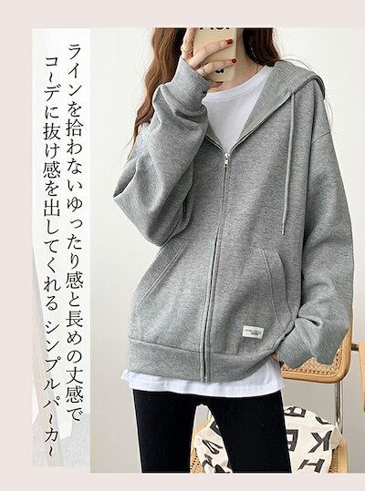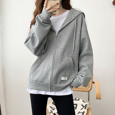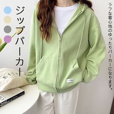 ジップパーカー レディース 秋 冬 ゆったり トップス 長袖 秋冬 カジュアル おしゃれ 大きいサイズ 韓国風 レディース フード付き 6色展開 ジャケット ジップアップパーカー