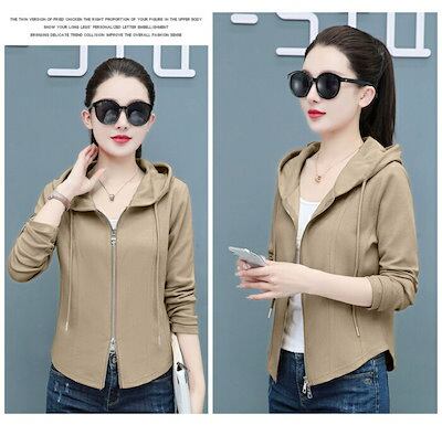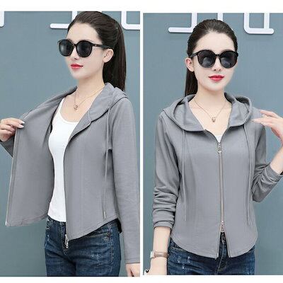 パーカー レディース 薄手 秋 春 細身 フード付き アウター ゴルフウェア ファスナー 長袖 フード ジップアップ スウェット 薄手 無地 大人 おしゃれ カジュアル ダブルジップ グレー ピンク