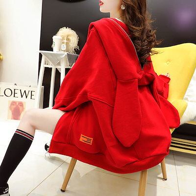 ウサギの耳のフード付きカーディガン セーター女性 オールマッチ ルーズ カジュアル レディース トップ コート r n1001- ホワイト r n1002-イエロー r n1003-赤 r n0
