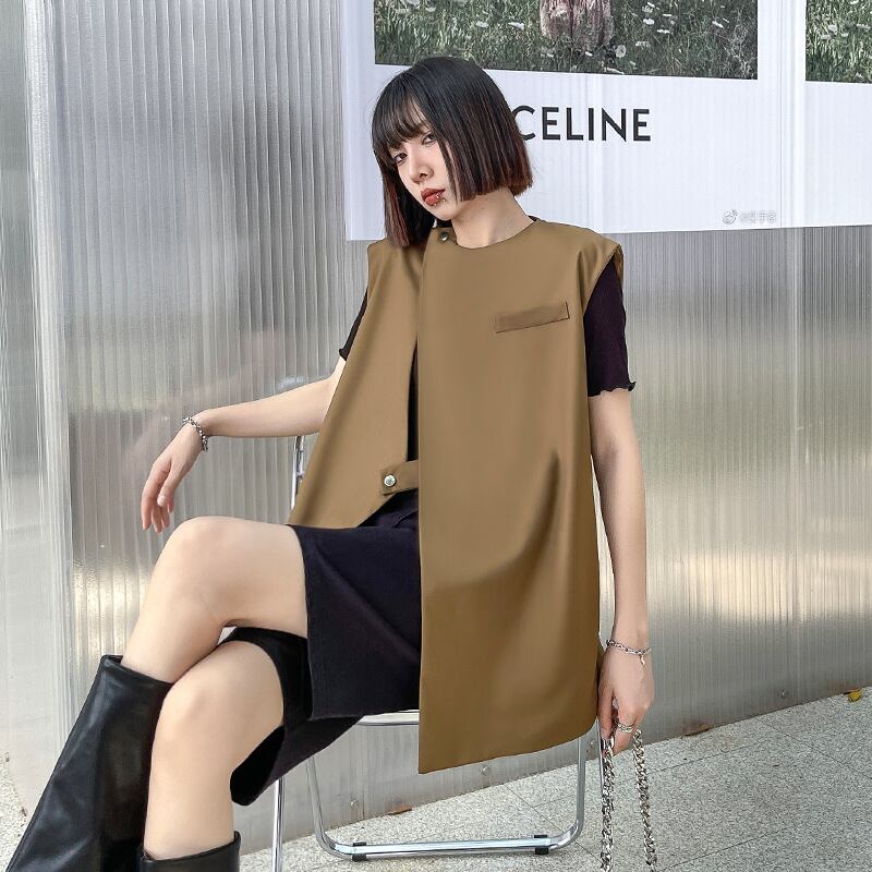 初回送料無料夏の薄いゆったりサイズノースリーブコートベストファショントップスYM-1106