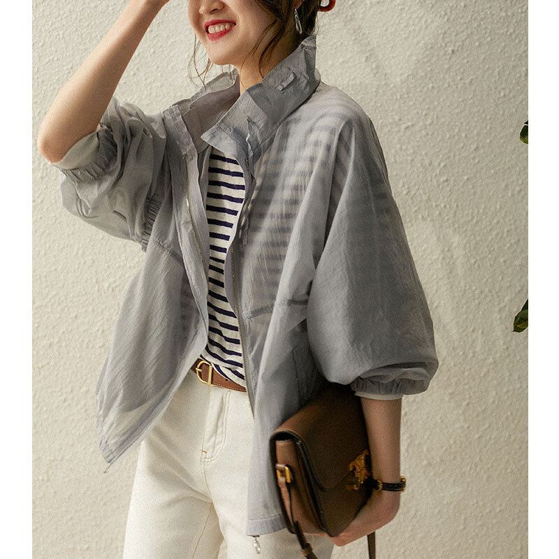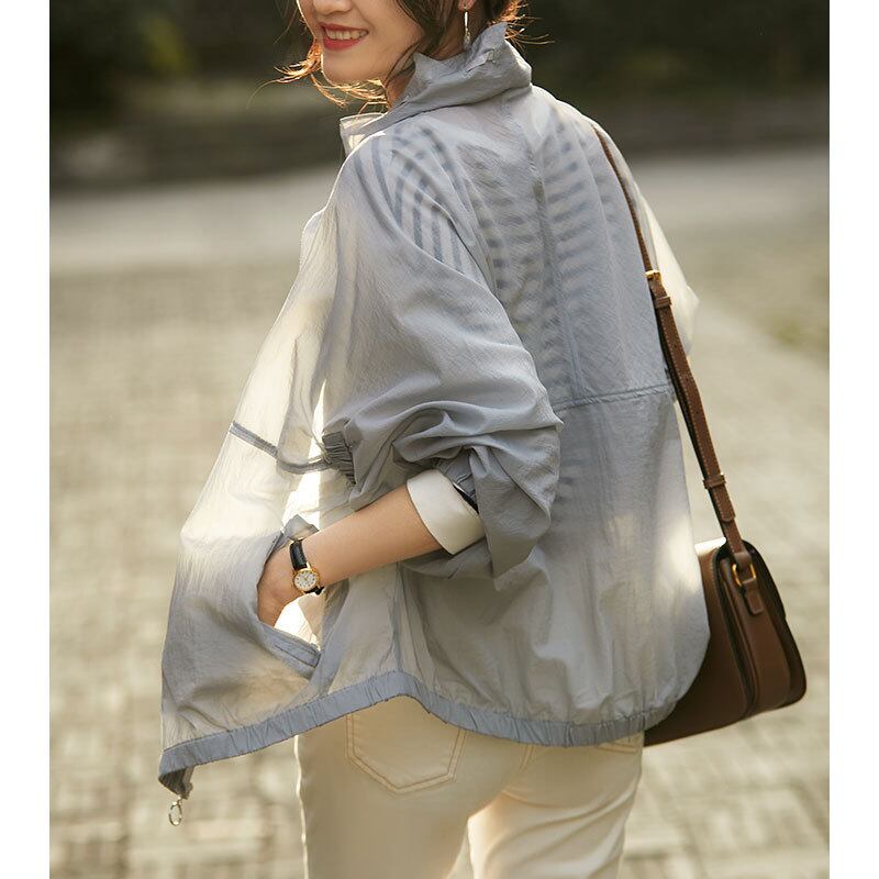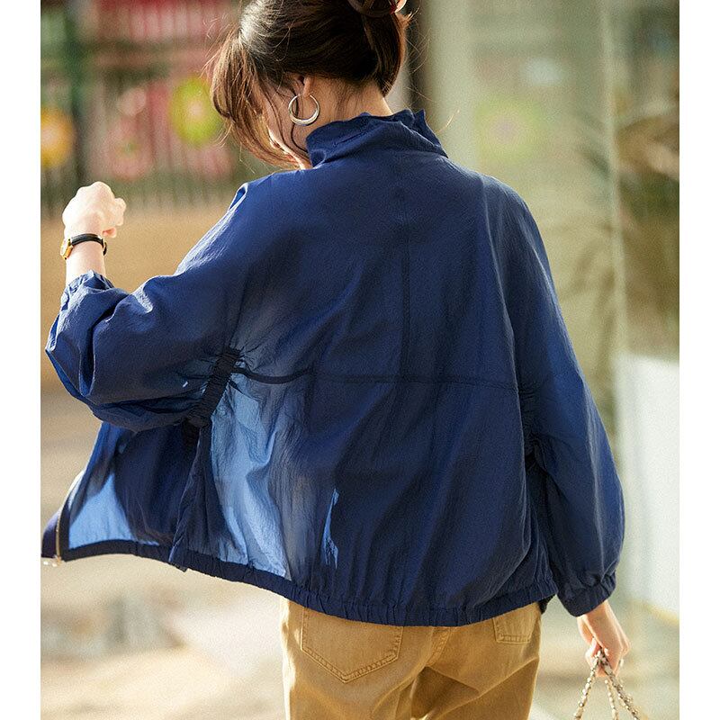 初回送料無料カジュアルコートトップスゆったりサイズスタンドカラージャケットUVカット