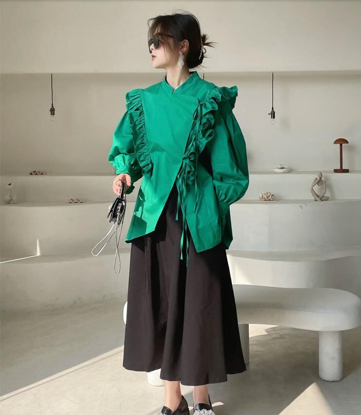 初回送料無料トップスパフスリーブフリルシャツレディースファショントップス人気商品