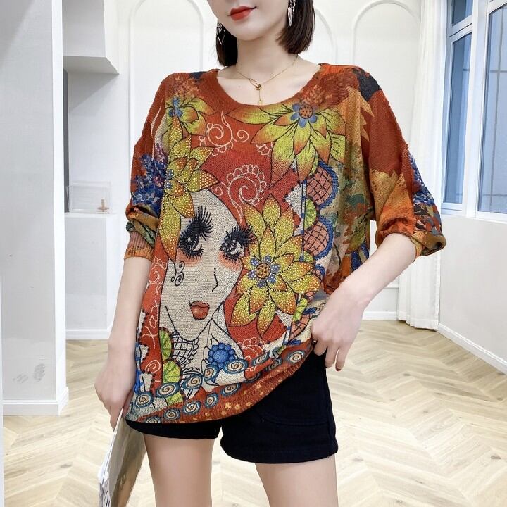 初回送料無料Tシャツニットトップスラージサイズダイヤモンド個性的ファッション