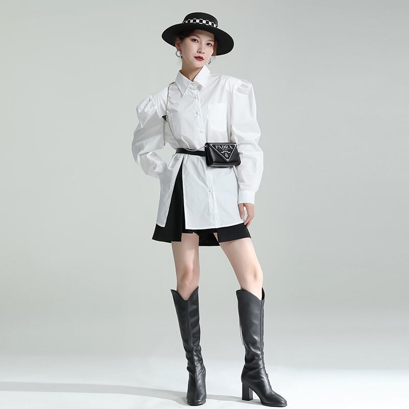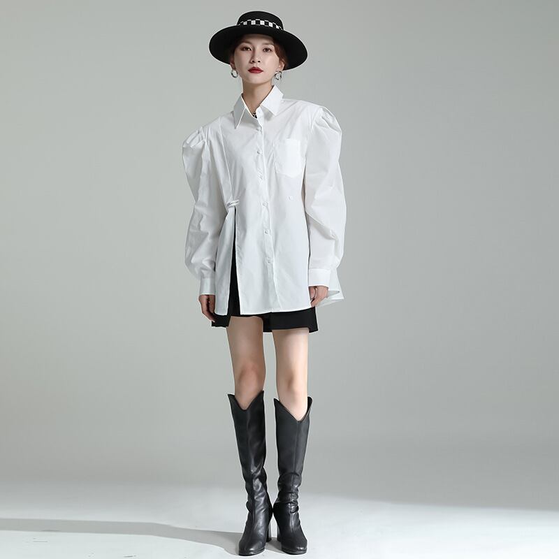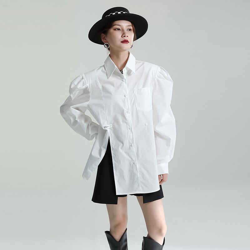 初回送料無料新作ゆったりサイズシャツバルーンスリーブシングルトップス人気商品