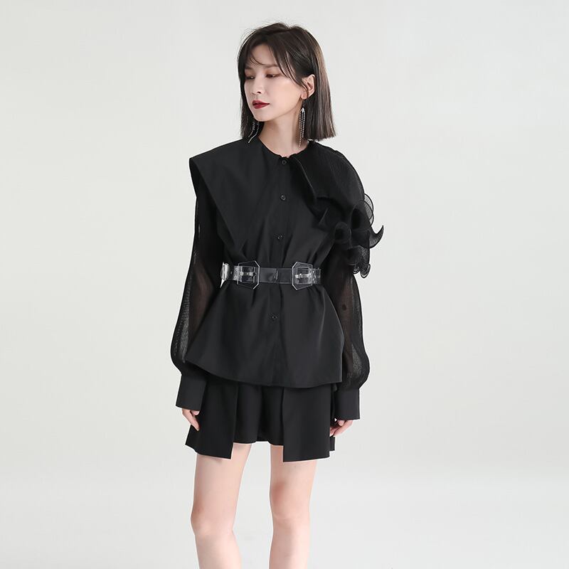 初回送料無料新作ベルトゆったりサイズパフスリーブシャツサマートップトップス人気商品