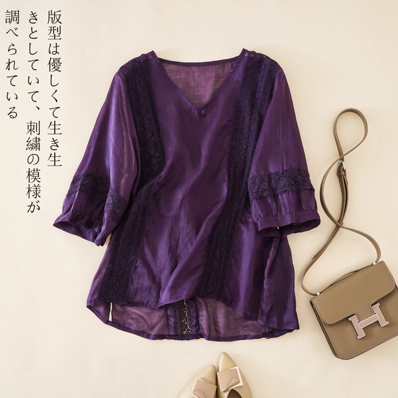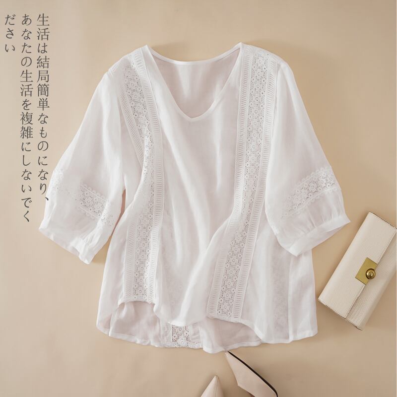 初回送料無料トップスシャツステッチコットンリネンTシャツVネックTシャツブラウス