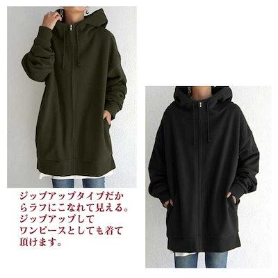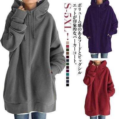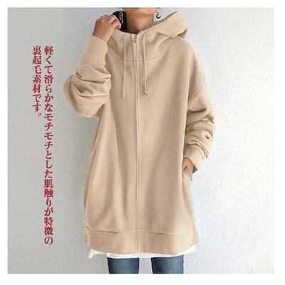 ロングカーディガン ボリュームネック 無地 レディース ロング丈 長袖 着痩せ ハイネック ジップアップパーカー パーカー 薄 裏起毛 あっ