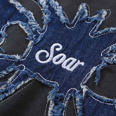 ベルシースウェット トップス 裏起毛 トレーナー チョウ 蝶 バタフライ レディース 韓国ファッション アップリケ デニム ミディ丈 秋冬 カジュアル 白